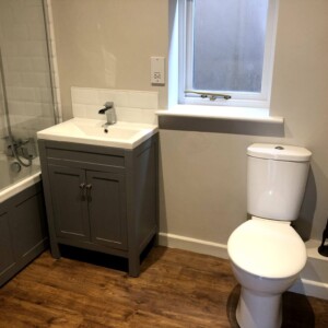 - Bathroom with shower over bath